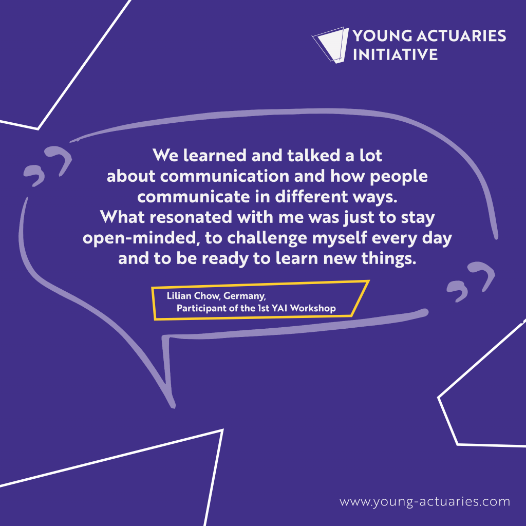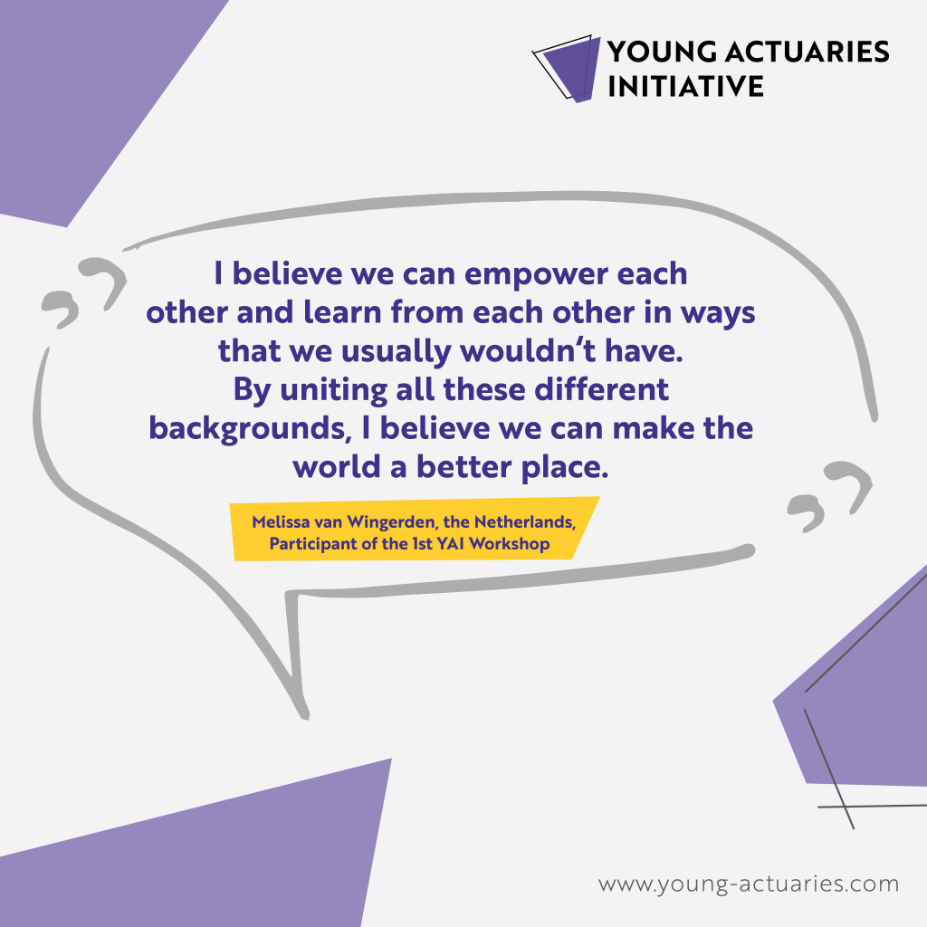 The Young Actuaries Initiative embodies this idea by empowering and promoting young actuaries on an international level while inspiring them to take new insights back to their local communities. Through collaborative activities and transnational events, YAI strengthens cross-border connections and equips participants with practical tools and strategies to foster both personal and professional growth.